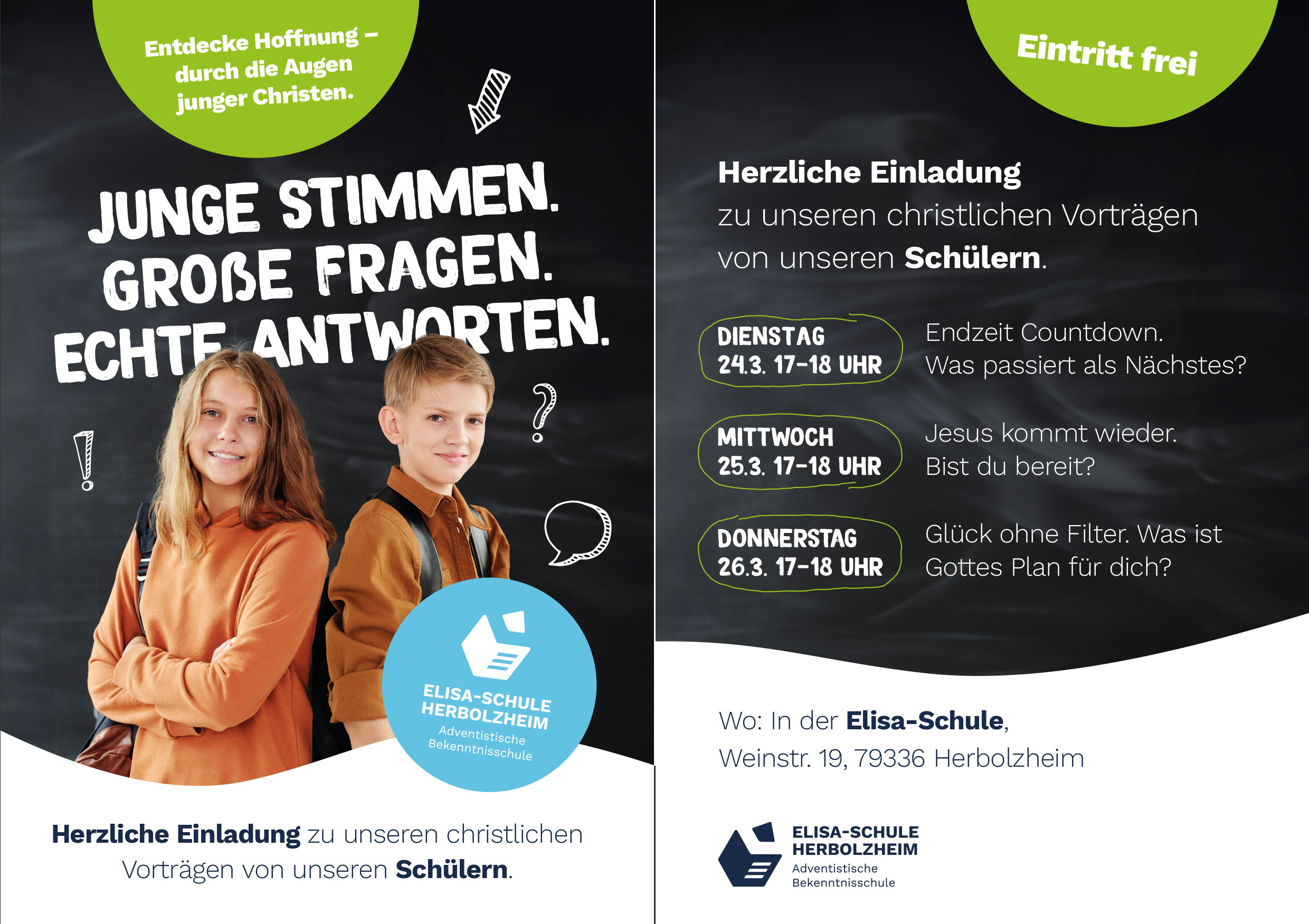 Herzliche Einladung zu unseren christlichen Vorträgen von unseren Schülern.
