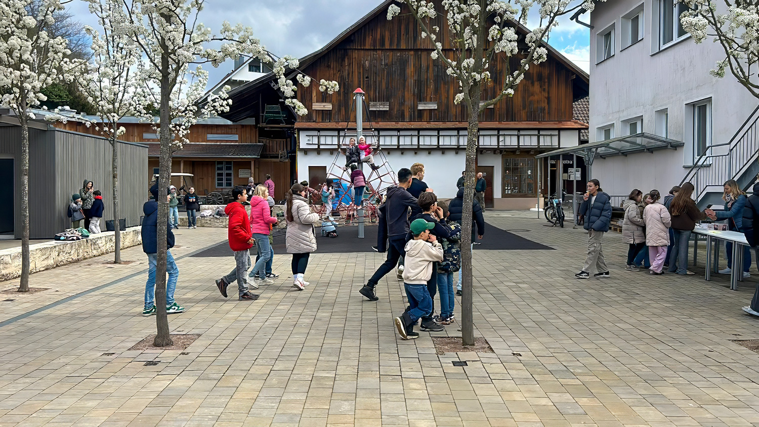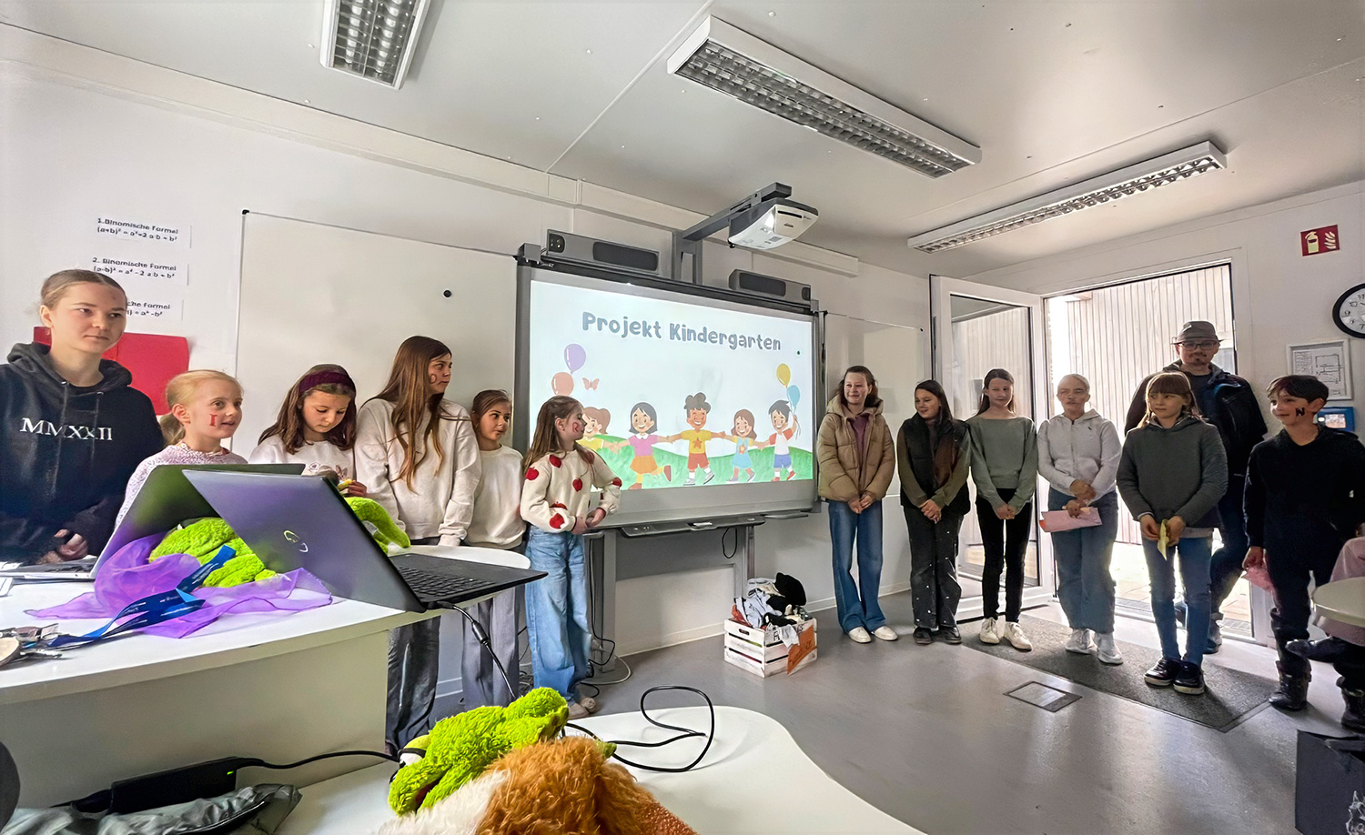 die Schülerinnen und Schüler der Grund- und Realschule im Vorfeld