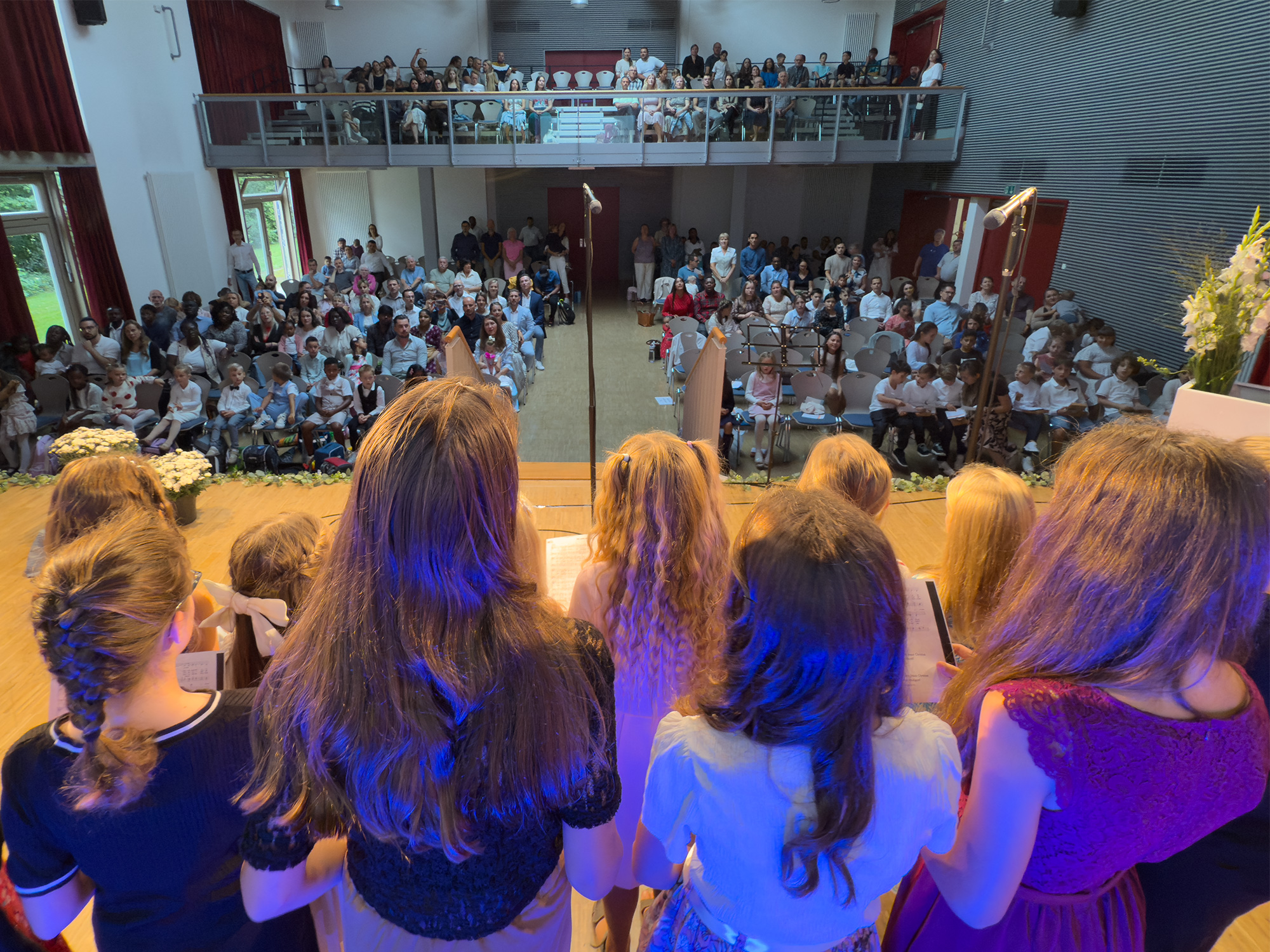 Ein weiterer Höhepunkt war die Verleihung des Sportabzeichens, bevor die Kinder der zweiten Klasse feierlich eine eigene Bibel überreicht bekamen. Für musikalische Vielfalt sorgten verschiedene Beiträge der Grund- und Realschule, die von gemeinsamem Gesang der ganzen Schulgemeinschaft umrahmt wurden.